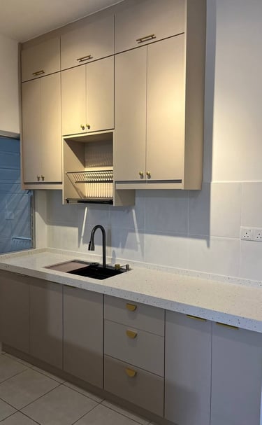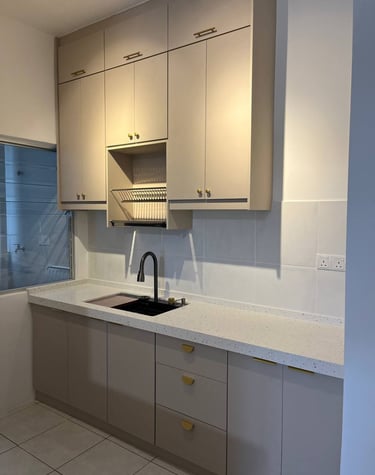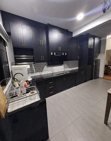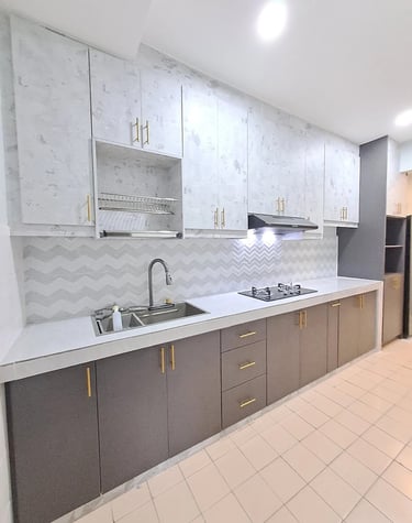 Kami bina kabinet dapur moden ikut ruang dan gaya anda. Dapatkan sebut harga percuma + lakaran susun atur. Klik butang WhatsApp untuk mula berbincang.